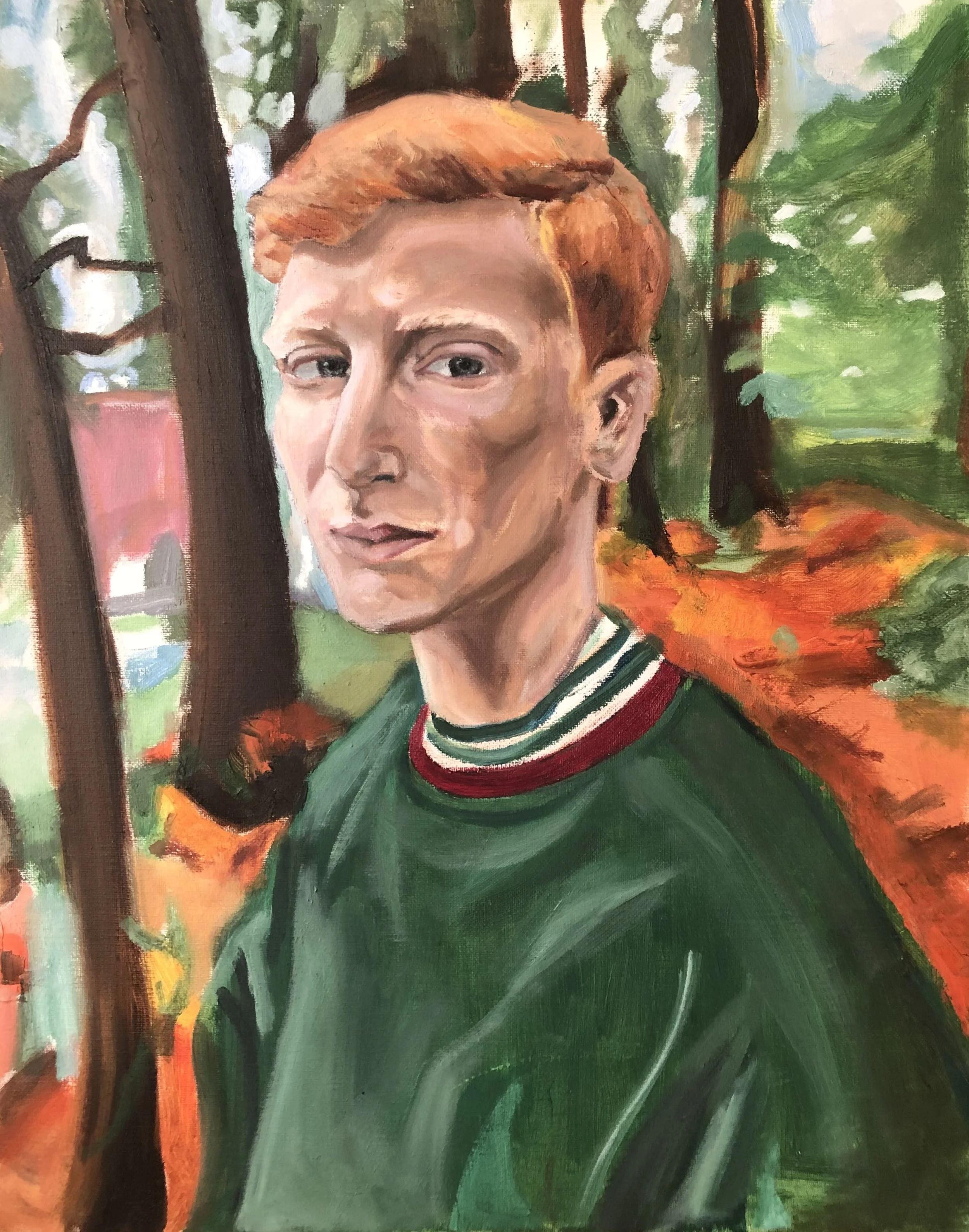 “My work primarily focuses on relationships - how they are established, maintained, and strained. I aim to depict the intimacy of human interaction through allegorical subject matter, using familiar objects to draw the viewer in and allowing them to determine the object's status in relation to the other pieces of the puzzle. The main figure is emphasized, while different iconography within a liminal space is used to offset the viewer's expectations.